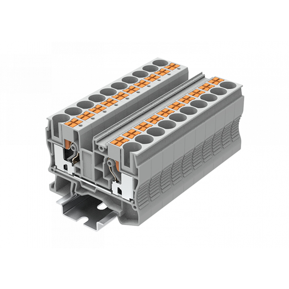 Проходная клемма, тип фиксации провода: Push-in, номинальное сечение: 10 мм кв., 57A, 1000V, ширина: 10,2 мм, цвет: серый, тип монтажа: DIN35