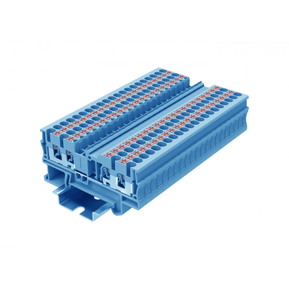 Проходная клемма, 4 точки подключения, тип фиксации провода: Push-in, номинальное сечение: 2,5 мм кв., 24A, 500V, ширина: 5,2 мм, цвет: синий, тип монтажа: DIN35