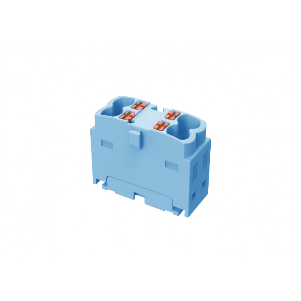 Проходной блок, 4 точкки подключения, тип фиксации провода: push-in, номинальное сечение: 1,5 мм кв., 17,5A, 450V, цвет: синий