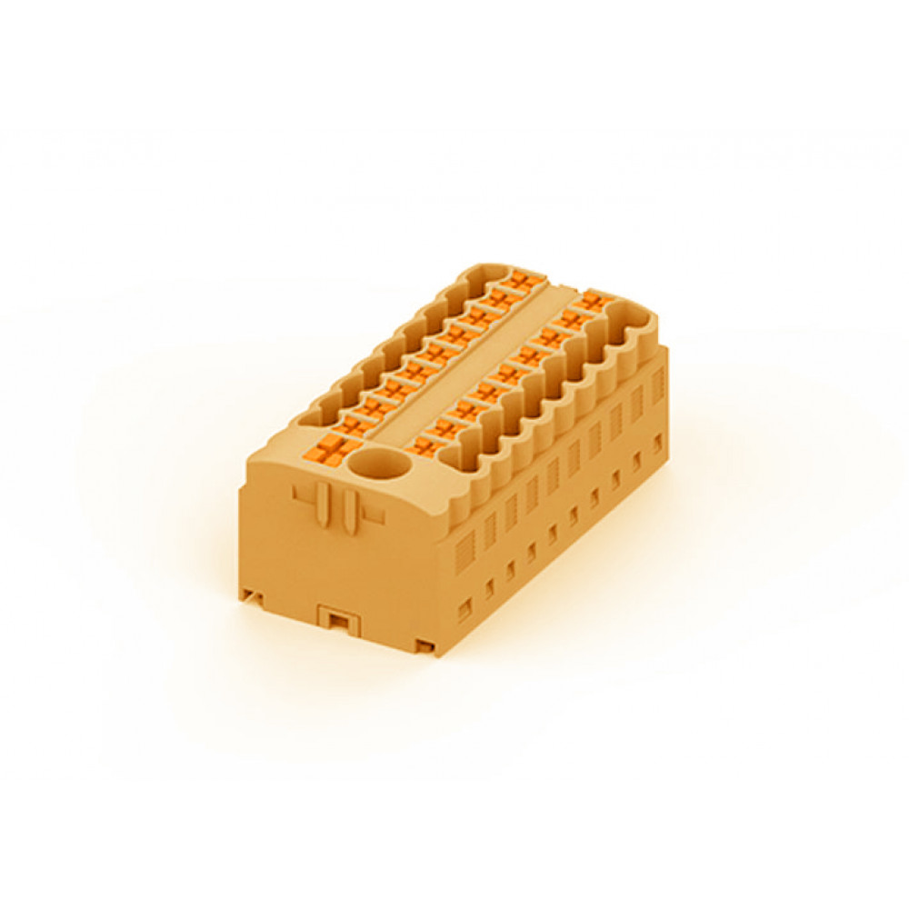 Блок распределения потенциала, 19 точкек подключения, тип фиксации провода: push-in, номинальное сечение: 2,5/6 мм кв., 41A, 450V, цвет: оранжевый