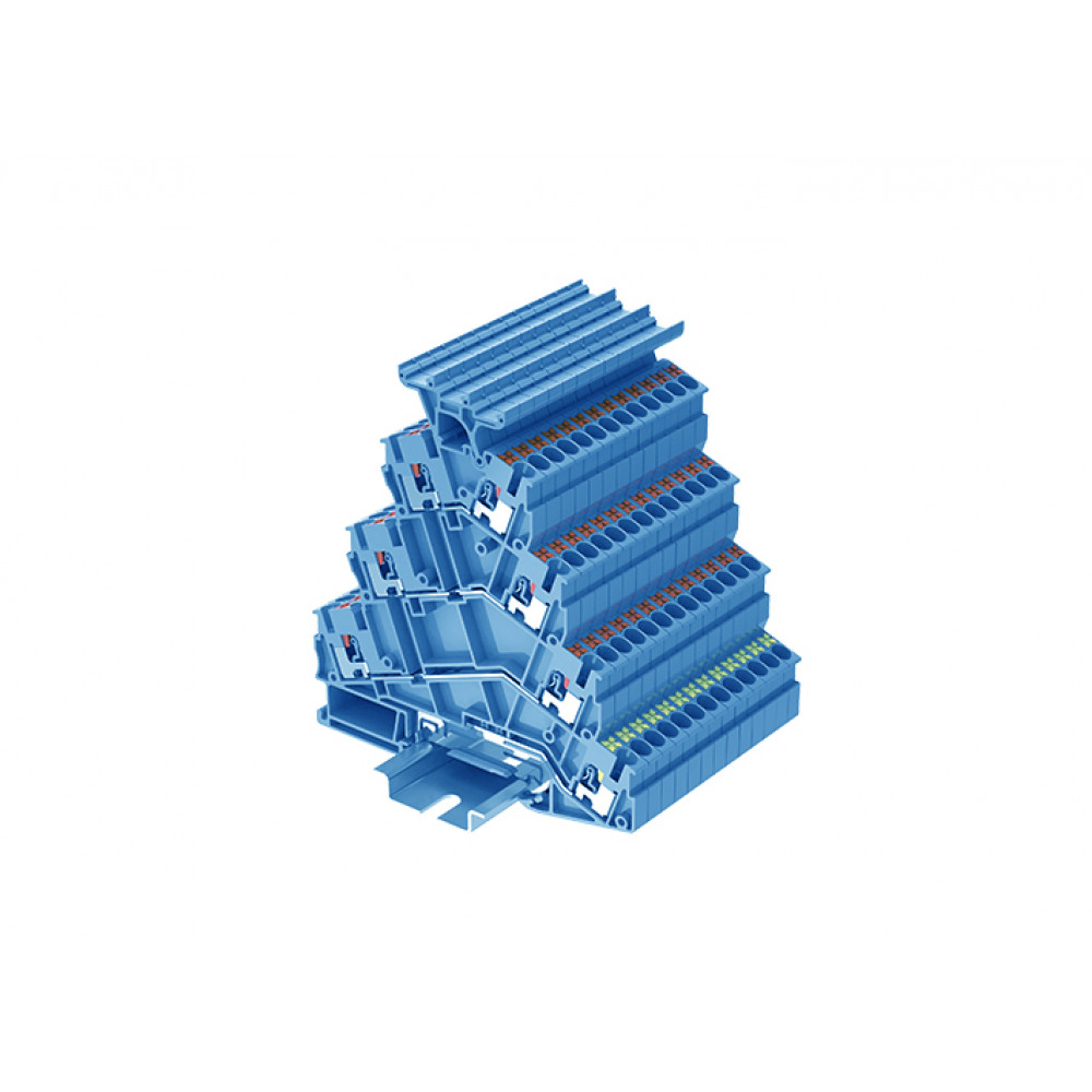 TPFS2.5-2T-BU Клемма TP 4-уровневая, угловая с держателем маркировки, с заземл., Push-in, сеч.2.5мм2, син.
