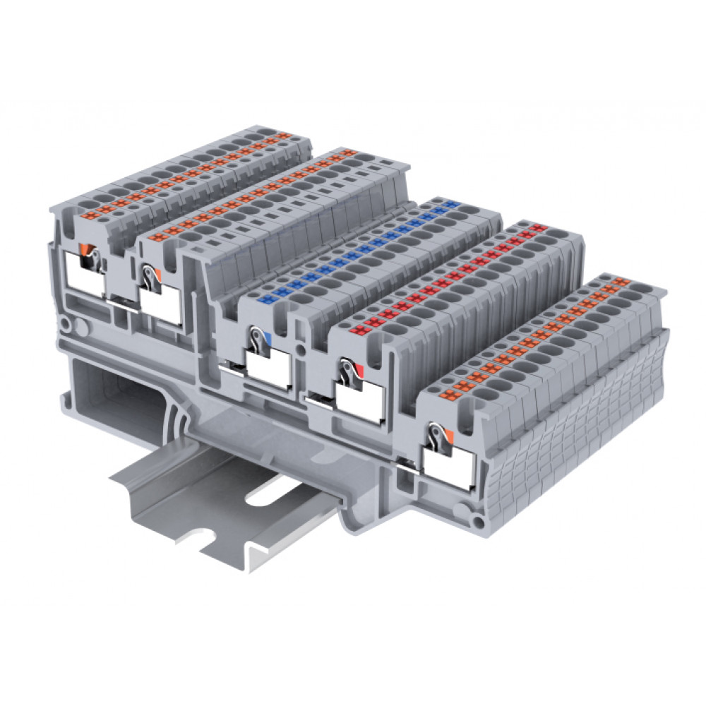 Клемма для подключения датчиков, +/-/сигнал, красный светодиод, 4 точки подключения, тип фиксации провода: push-in, номинальное сечение: 1,5 мм кв., 13,5A, 250V, ширина: 3,5 мм, цвет: серый, тип монтажа: DIN 35