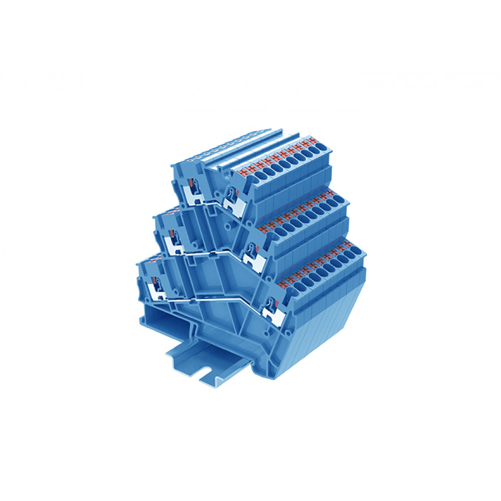 TPTS2.5-2-BU Клемма TP проходная 3-уровневая угловая, Push-in, сеч.2.5мм2, син.