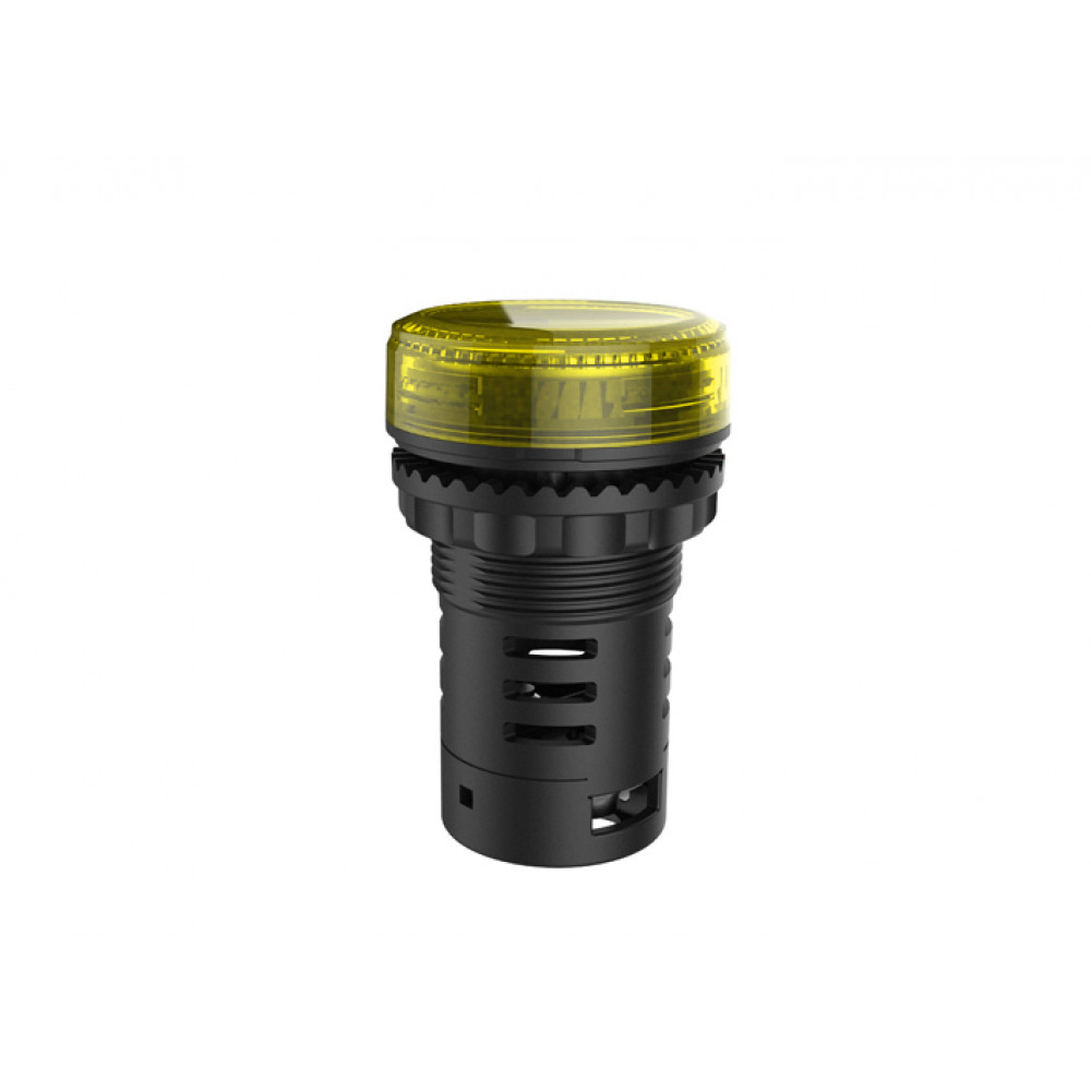 Индикатор, тип F2, LED AC/DC 36V, пластиковое переднее кольцо, диаметр головки индикатора 29,5 мм, диаметр посадочного отверстия: 22 мм, цвет: желтый