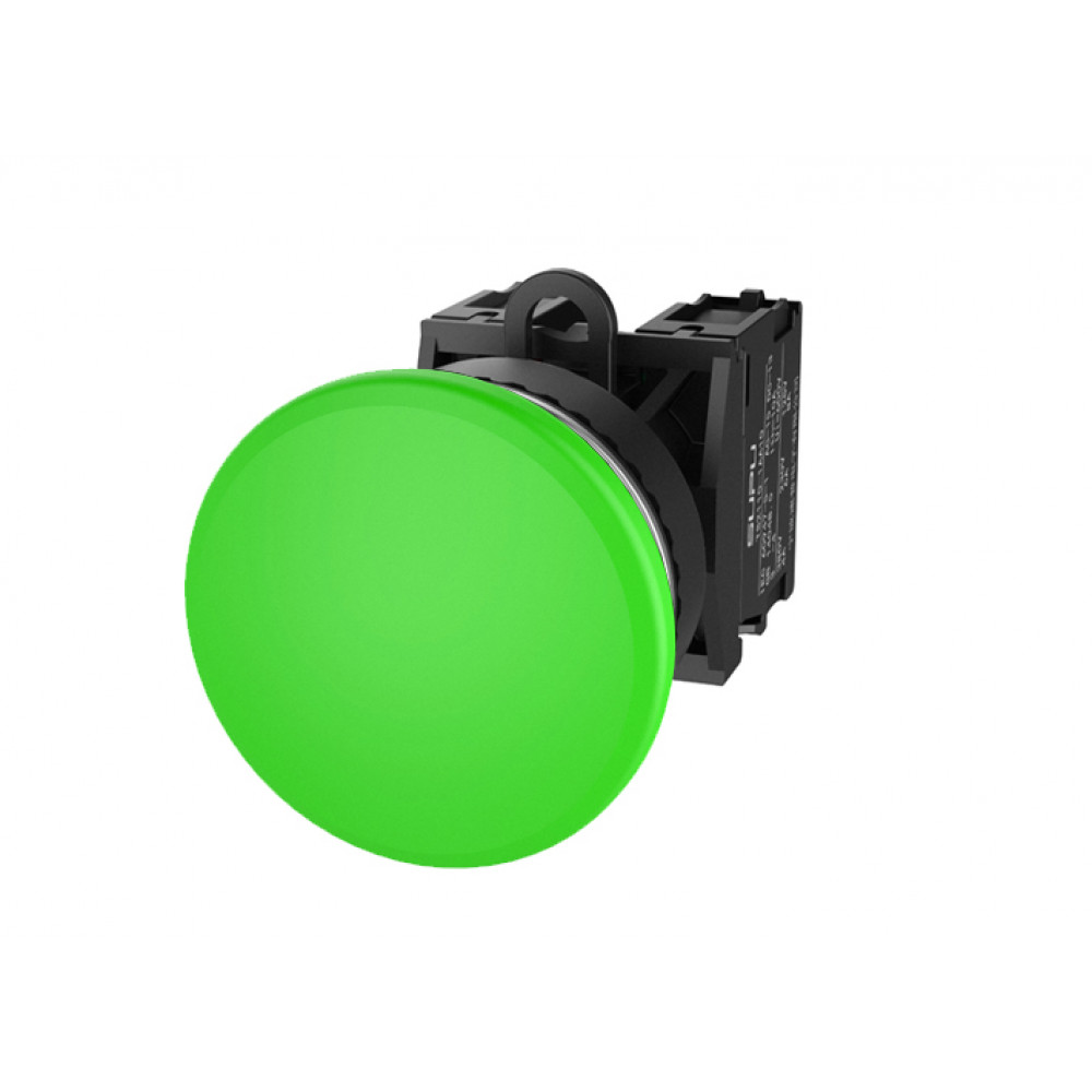 Кнопка грибовидная, без блокировки, без подсветки, алюминиевое переднее кольцо, без контактной группы, диаметр головки кнопки 40 мм, диаметр посадочного отверстия: 22 мм, цвет: зеленый
