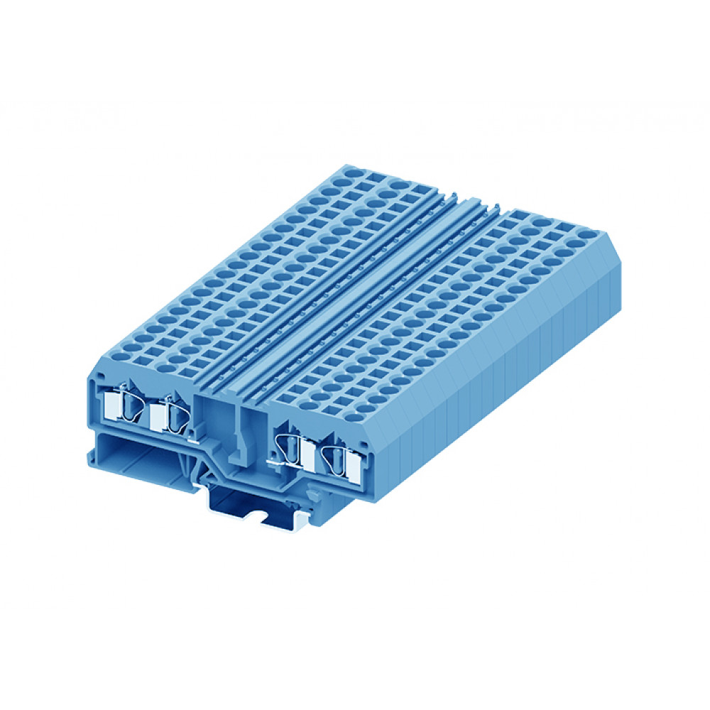 Проходная клемма, TA4-2-2, с разрывом цепи, 4 точки подключения, тип фиксации провода: пружинный, номинальное сечение: 4 мм кв., 32A, 800V, ширина: 6 мм, цвет: синий,