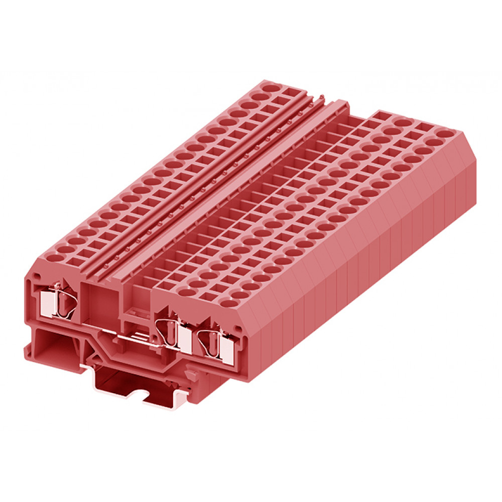 Проходная клемма, TA4-1-2, 3 точки подключения, тип фиксации провода: пружинный, номинальное сечение: 4 мм кв., 32A, 800V, ширина: 6 мм, цвет: красный, DIN 35