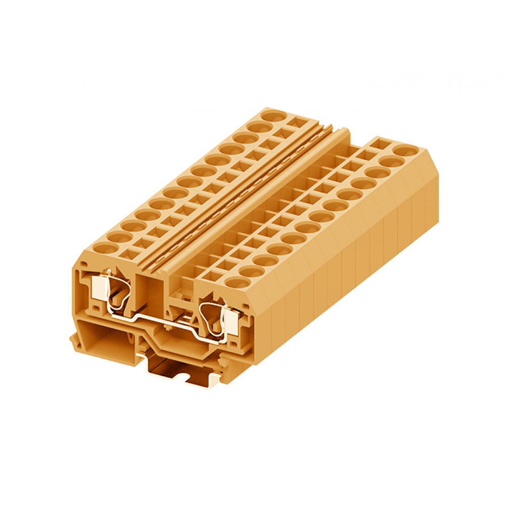 Проходная клемма, TA10, тип фиксации провода: пружинный, номинальное сечение: 10 мм кв., 57A, 800V, ширина: 10 мм, цвет: оранжевый, тип монтажа: DIN 35