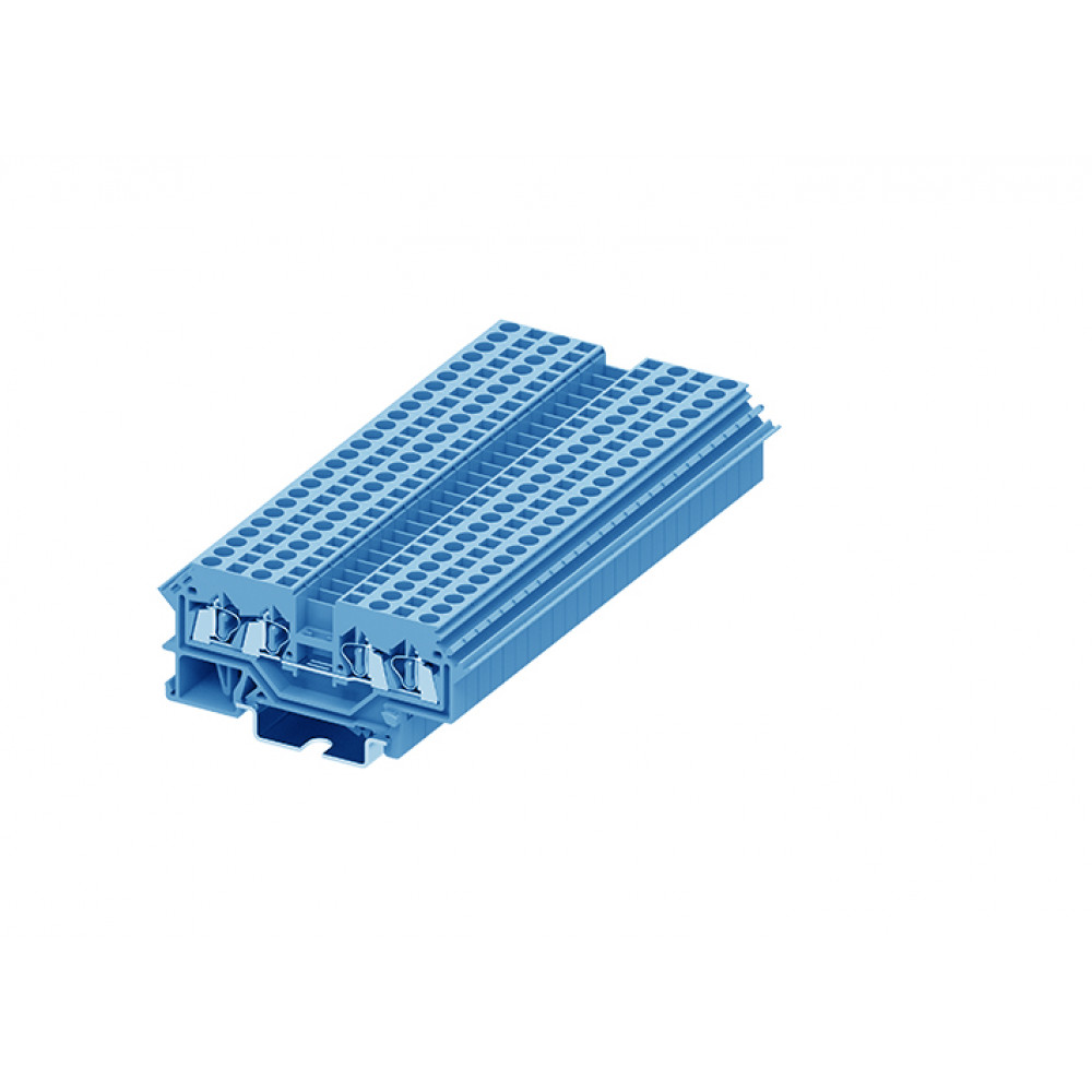 Проходная клемма, TA2.5, 4 точки подключения, тип фиксации провода: пружинный, номинальное сечение: 2,5 мм кв., 24A, 800V, ширина: 12 мм, цвет: синий, тип монтажа: DIN 35