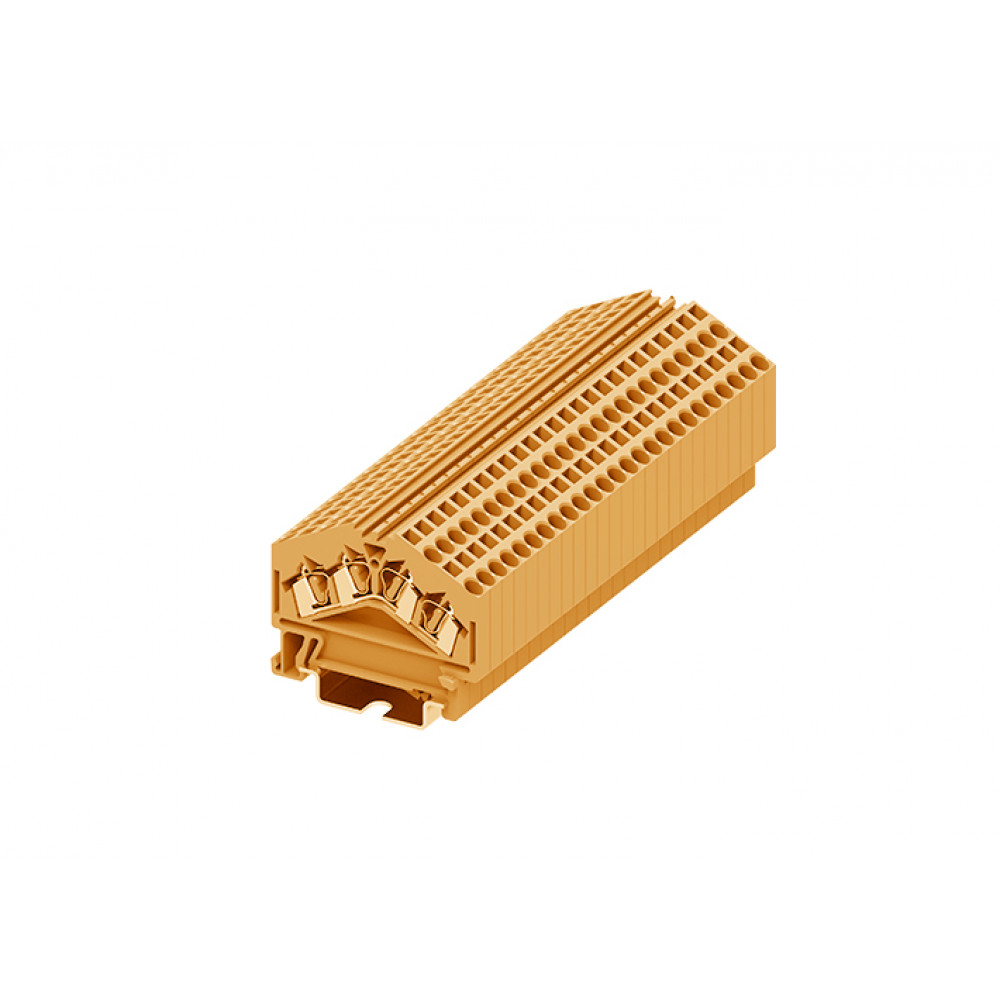 Проходная клемма, TA2.5, угловая, 4 точки подключения, тип фиксации провода: пружинный, номинальное сечение: 2,5 мм кв., 24A, 800V, ширина: 5 мм, цвет: оранжевый, тип монтажа: DIN