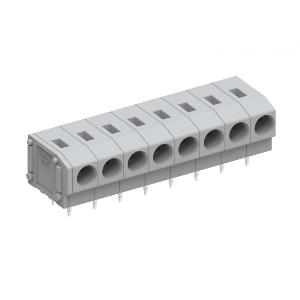 Клемма, горизонтальный подвод кабеля, на плату, шаг: 5.0 мм, 12 полюсов, фиксация провода пружинная, исполнение: два вывода на контакт, 320V, 24A, цвет: серый
