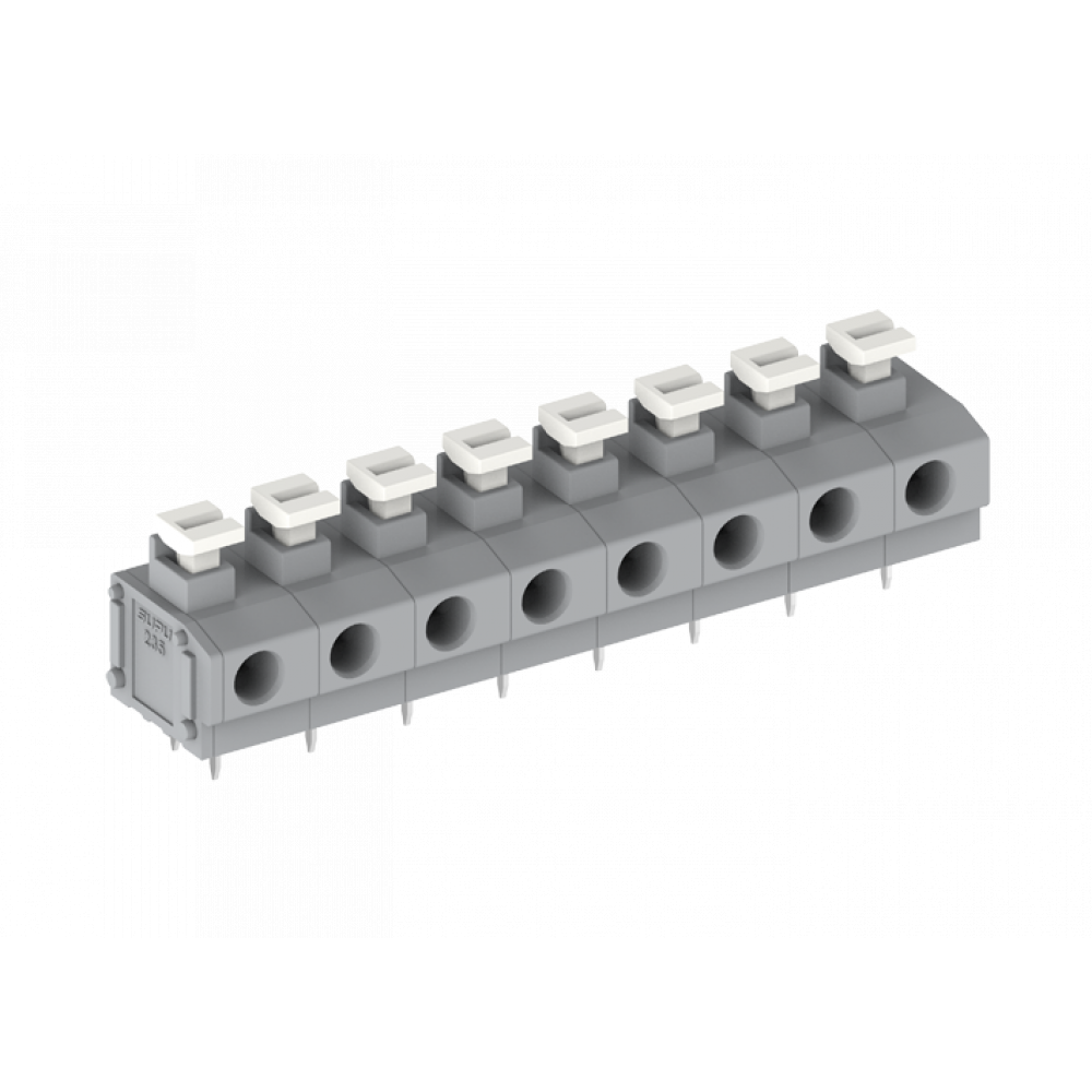 Клемма, горизонтальный подвод кабеля, на плату, шаг: 7.5 мм, 1 полюс, фиксация провода push-in, исполнение: два вывода на контакт, 630V, 17,5A, цвет: серый