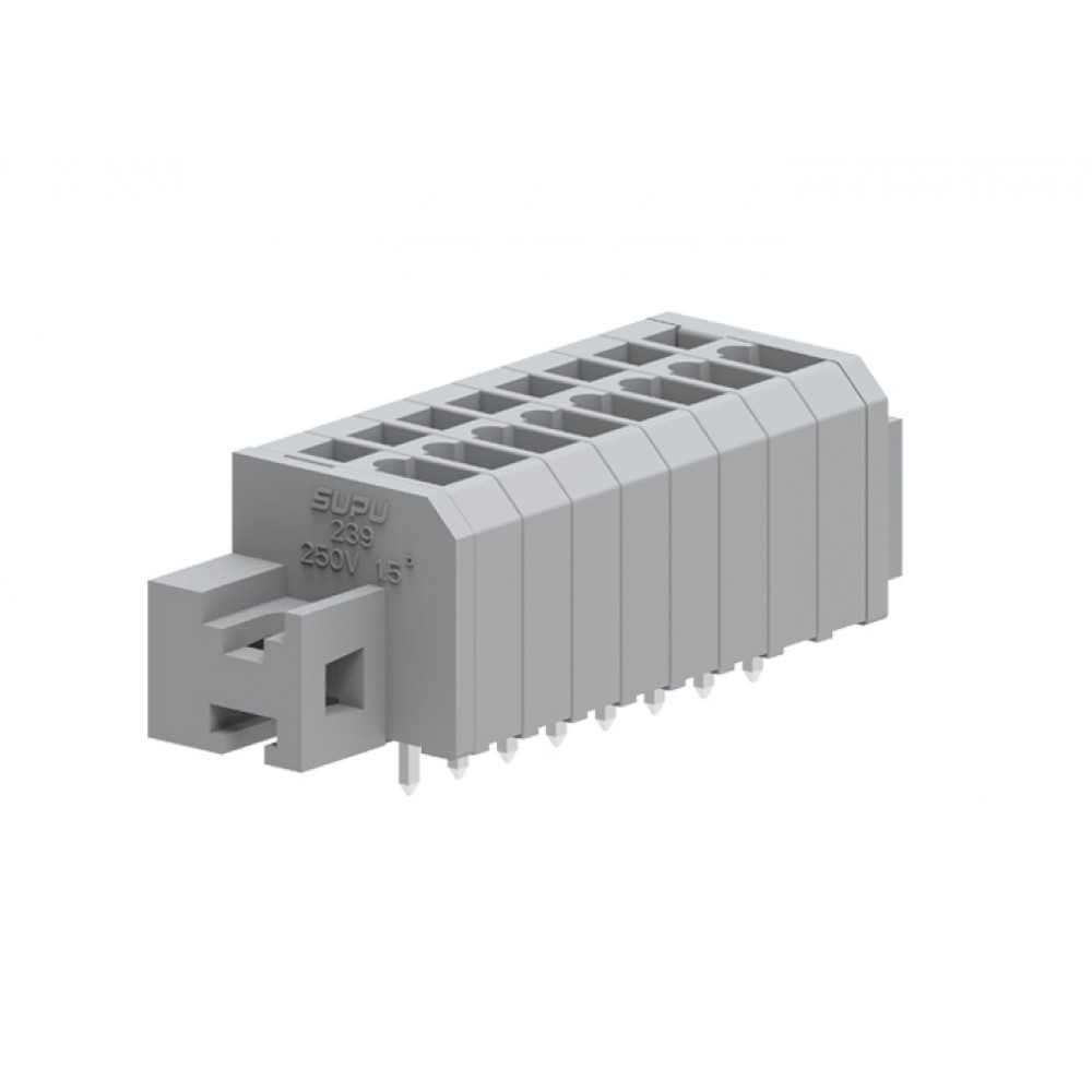 239304/010 Клеммник пружинный, шаг 3,5 мм, 1,5 мм2, 04 конт.фланц. крепл. (под пайку), сер.