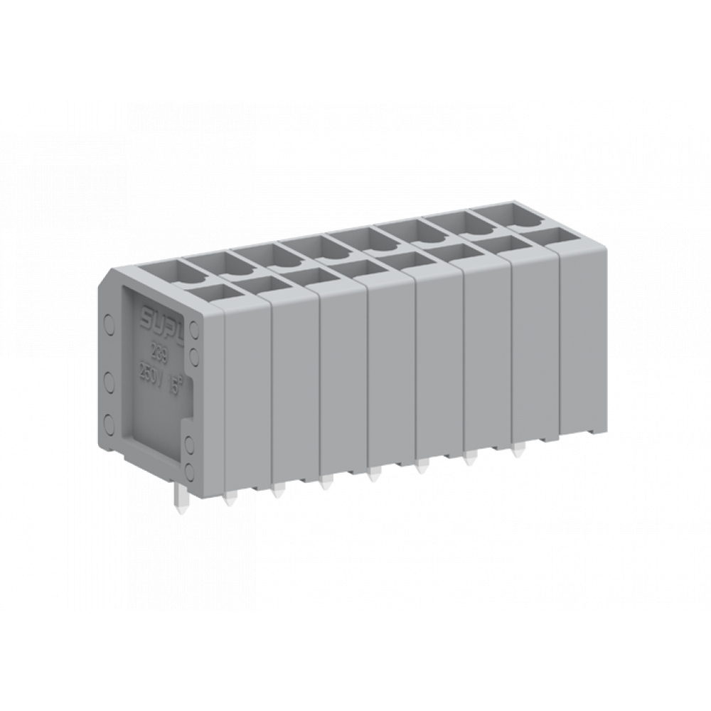 Клемма, вертикальный подвод кабеля, на плату, шаг: 3.5 мм, 5 полюсов, фиксация провода пружинная, исполнение: стандартное, 160V, 17,5A, цвет: серый