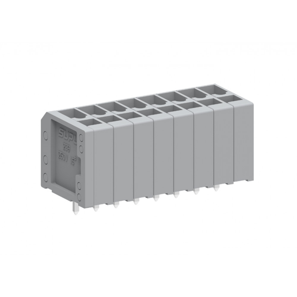 Клемма, вертикальный подвод кабеля, на плату, шаг: 3.5 мм, 8 полюсов, фиксация провода пружинная, исполнение: стандартное, 160V, 17,5A, цвет: серый