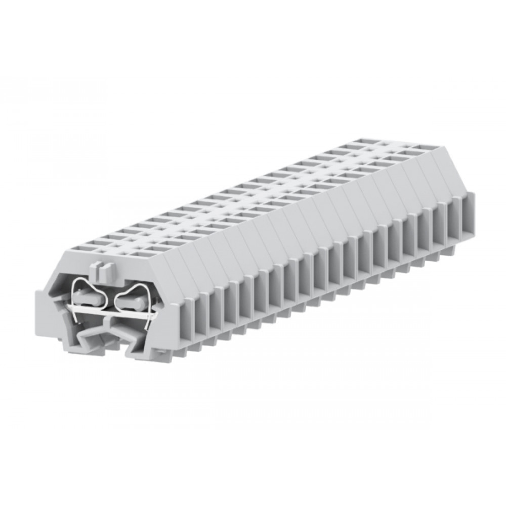 Мини клемма, боковой подвод кабеля, 2 точки подключения в клемме, тип фиксации провода: пружинный, номинальное сечение: 2,5 мм кв., 24A, 500V, цвет: светло-серый, тип монтажа: DIN15