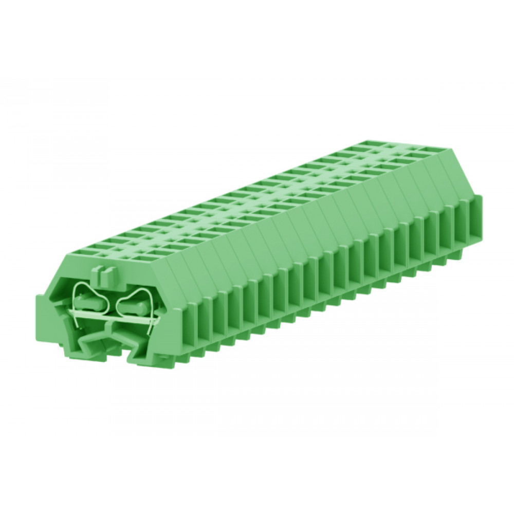 Мини клемма, боковой подвод кабеля, 2 точки подключения в клемме, тип фиксации провода: пружинный, номинальное сечение: 4 мм кв., 24A, 630V, цвет: зеленый, тип монтажа: DIN15