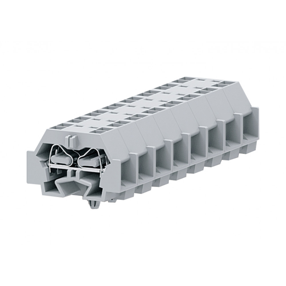 Мини клемма, боковой подвод кабеля, 4 точки подключения в клемме, тип фиксации провода: пружинный, номинальное сечение: 4 мм кв., 24A, 630V, цвет: светло-серый, тип монтажа: защелки в панель