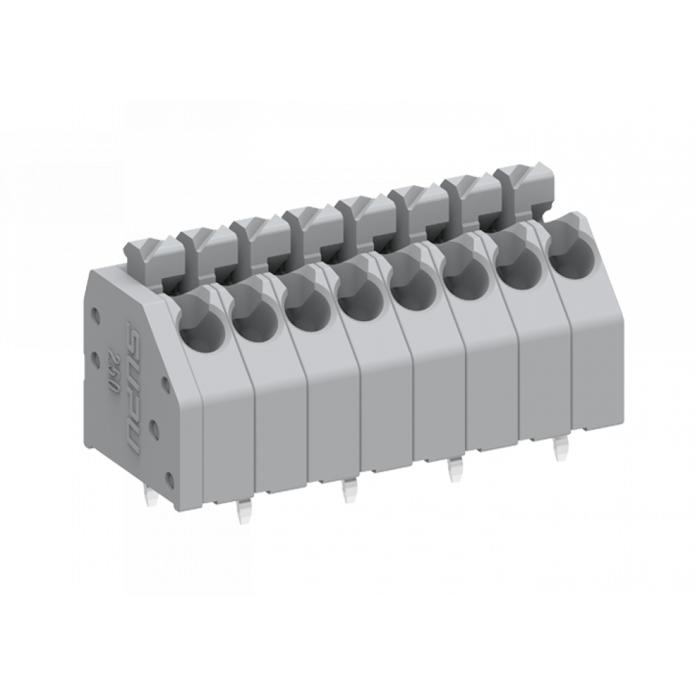Клемма, вертикальный подвод кабеля, на плату, шаг: 3.5 мм, 4 полюса, фиксация провода push-in, исполнение: выводы на плату в шахматном порядке, 320V, 8A, цвет: серый