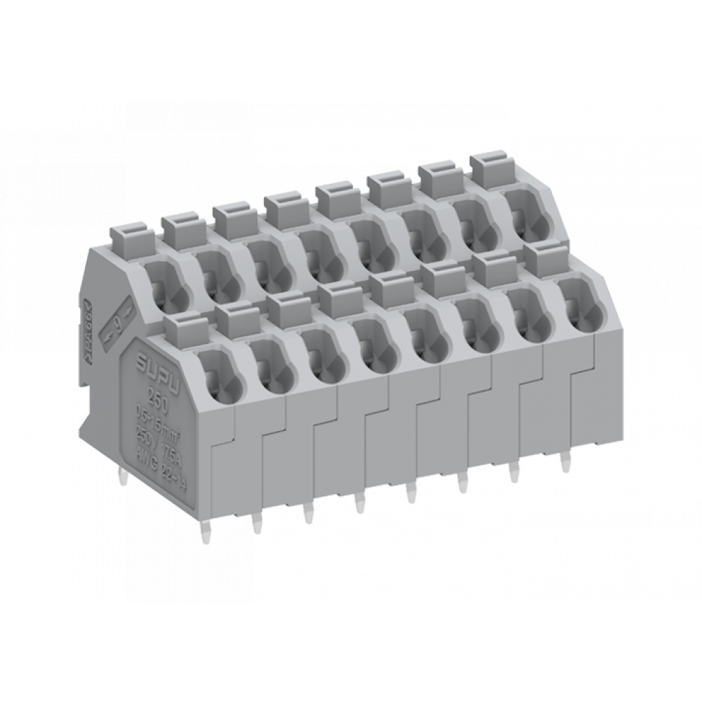 Клемма, 2 этажа, вертикальный подвод кабеля, на плату, шаг: 5.0 мм, 3 полюса, фиксация провода push-in, исполнение: стандартное, 320V, 17,5A, цвет: серый