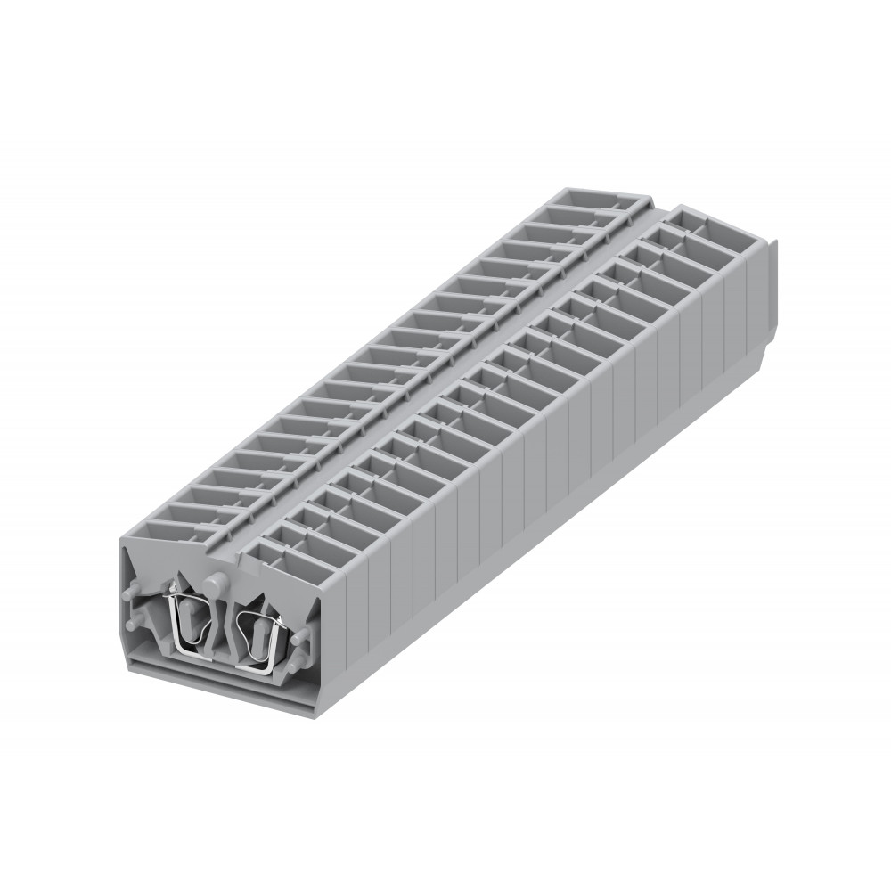 Мини клемма, верхний подвод кабеля, 2 точки подключения в клемме, тип фиксации провода: пружинный, номинальное сечение: 2,5 мм кв., 24A, 800V, цвет: серый, тип монтажа: без фиксации