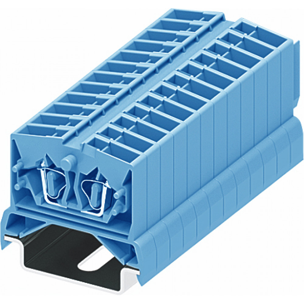 Мини клемма, верхний подвод кабеля, 2 точки подключения в клемме, тип фиксации провода: пружинный, номинальное сечение: 2,5 мм кв., 24A, 800V, цвет: синий, тип монтажа: DIN35