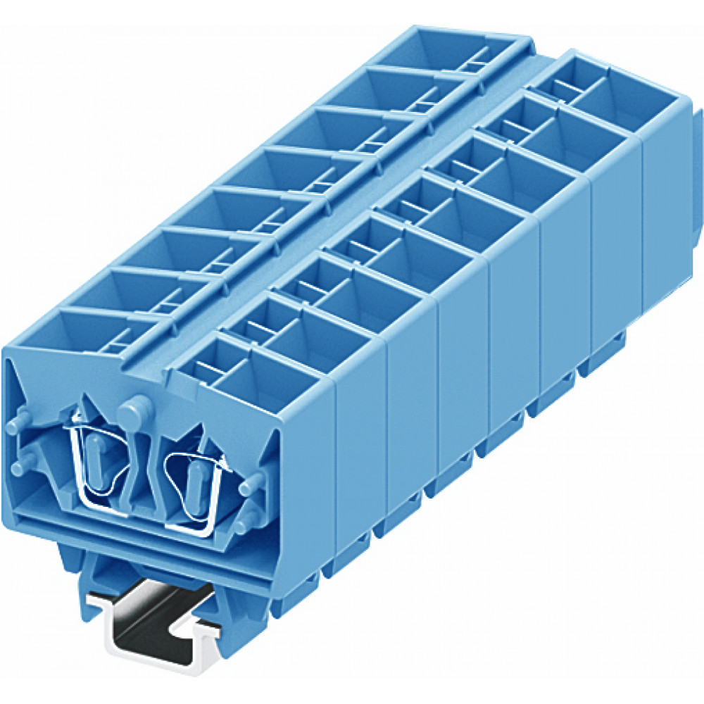 Мини клемма, верхний подвод кабеля, 4 точки подключения в клемме, тип фиксации провода: пружинный, номинальное сечение: 2,5 мм кв., 24A, 800V, цвет: синий, тип монтажа: DIN15
