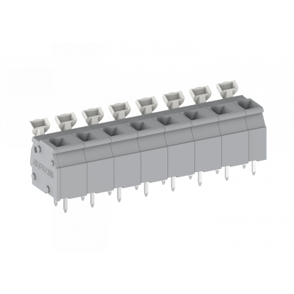 Клемма, вертикальный подвод кабеля, на плату, шаг: 7.5 мм, 6 полюсов, фиксация провода push-in, исполнение: два вывода на контакт, рычажный зажим, 630V, 24A, цвет: серый