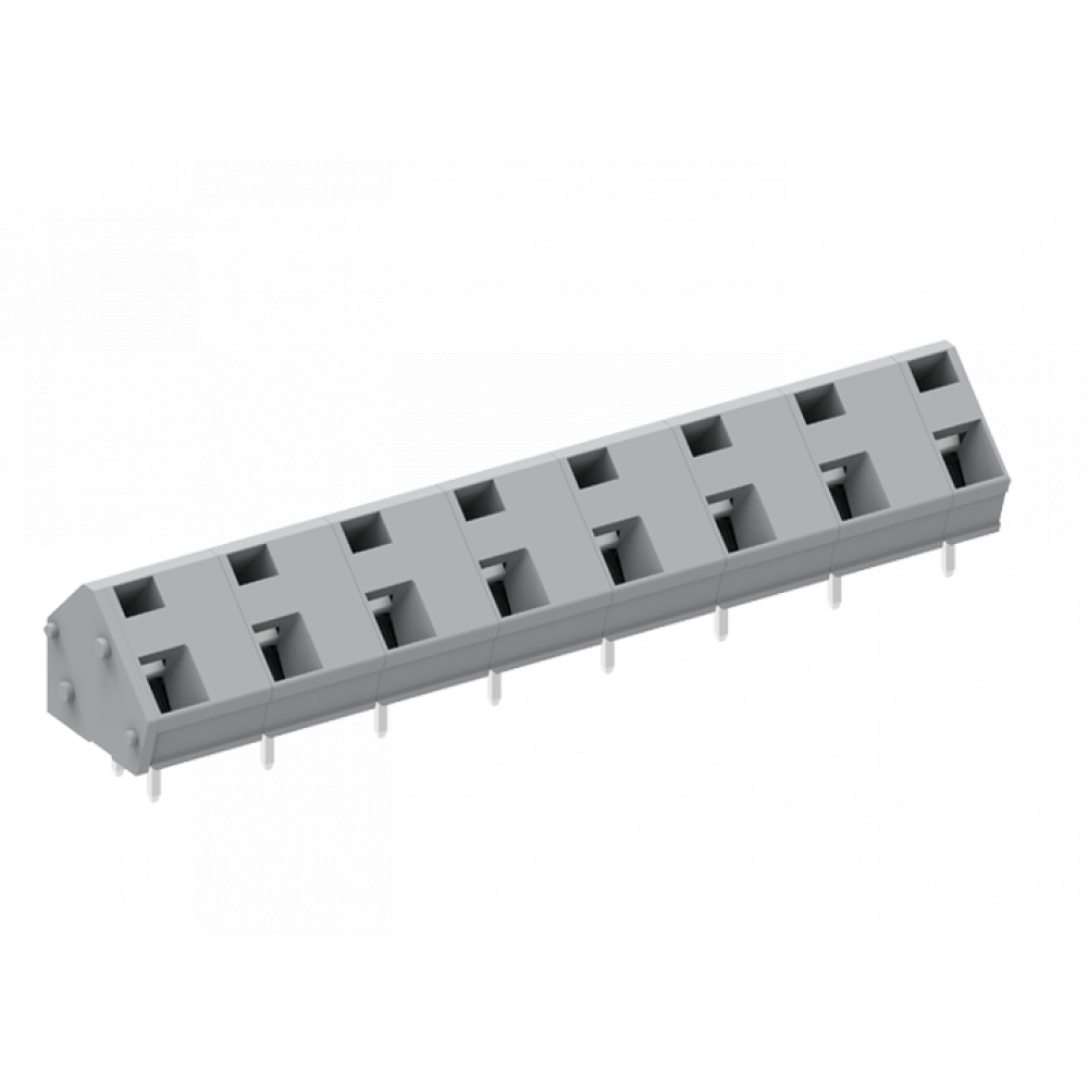 Клемма, подвод кабеля 45 град., на плату, шаг: 10.0 мм, 8 полюсов, фиксация провода пружинная, исполнение: два вывода на контакт, 1000V, 24A, цвет: серый