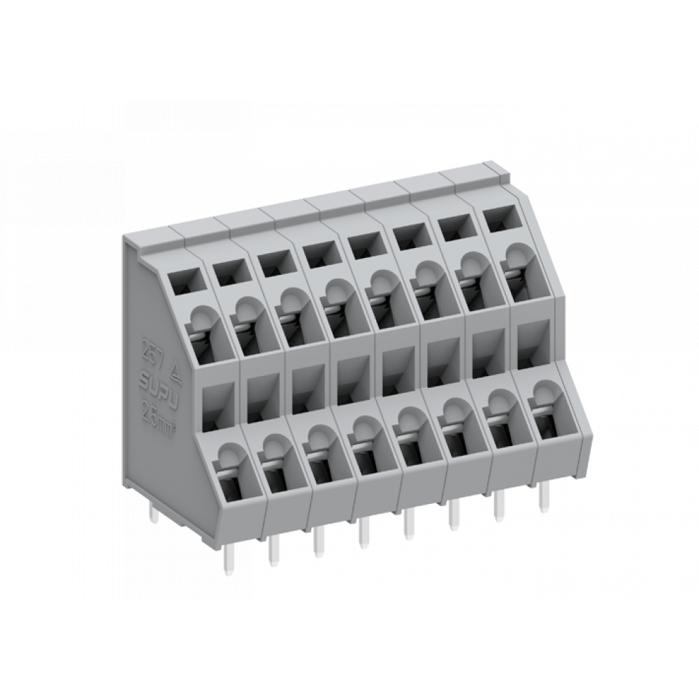 Клемма, 2 этажа, подвод кабеля 45 град., на плату, шаг: 5.0 мм, 40 полюсов, фиксация провода пружинная, исполнение: стандартное, 320V, 21A, цвет: серый