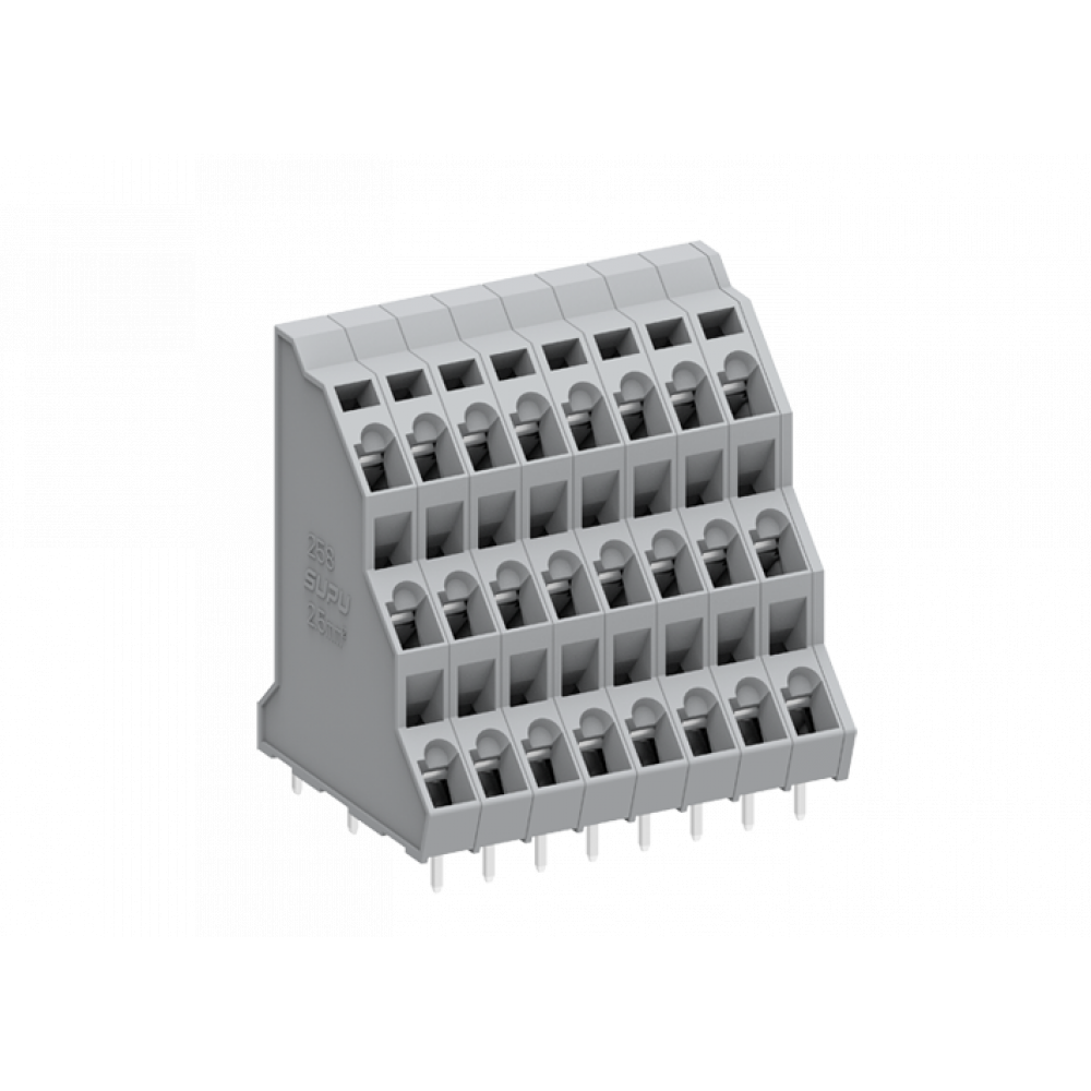 Клемма, 3 этажа, подвод кабеля 45 град., на плату, шаг: 5.0 мм, 14x3 полюсов, фиксация провода пружинная, исполнение: стандартное, 320V, 21A, цвет: серый