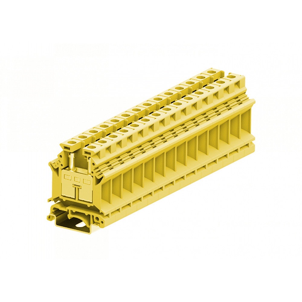 Проходная клемма, UK16, тип фиксации провода: винтовой, номинальное сечение: 16 мм кв., 76A, 800V, ширина: 12 мм, цвет: желтый, тип монтажа: DIN 35
