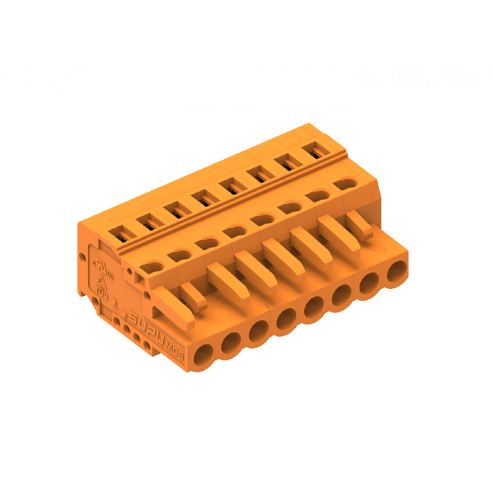Розеточный разъем, прямой, на кабель, шаг: 5.08 мм, 4 полюса, фиксация провода пружинная, исполнение: стандартное, 320V, 12A, цвет: оранжевый