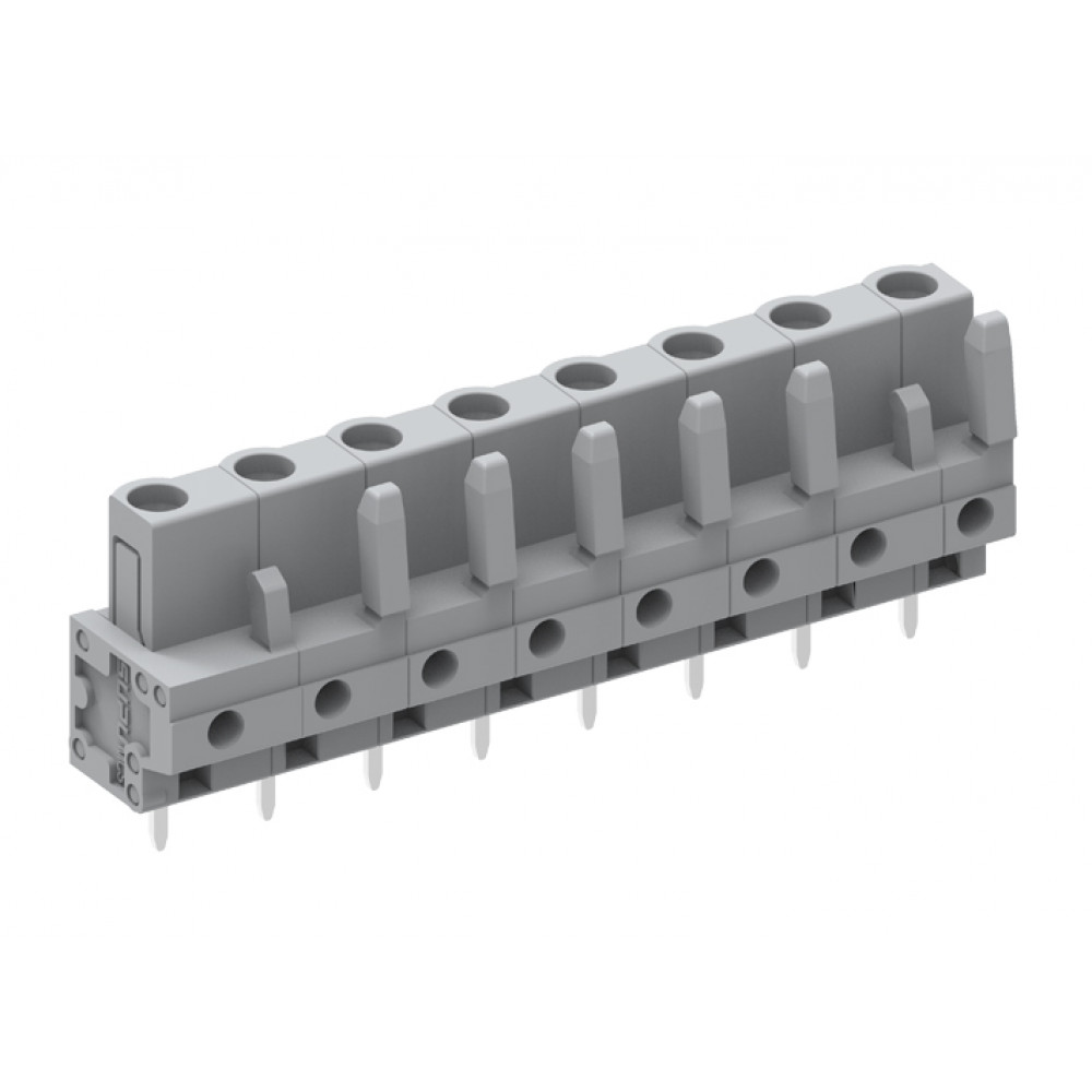 Розеточный разъем, вертикальный, на плату, шаг: 7.5 мм, 9 полюсов, фиксация на плате пайкой, исполнение: стандартное, 500V, 16A, цвет: серый