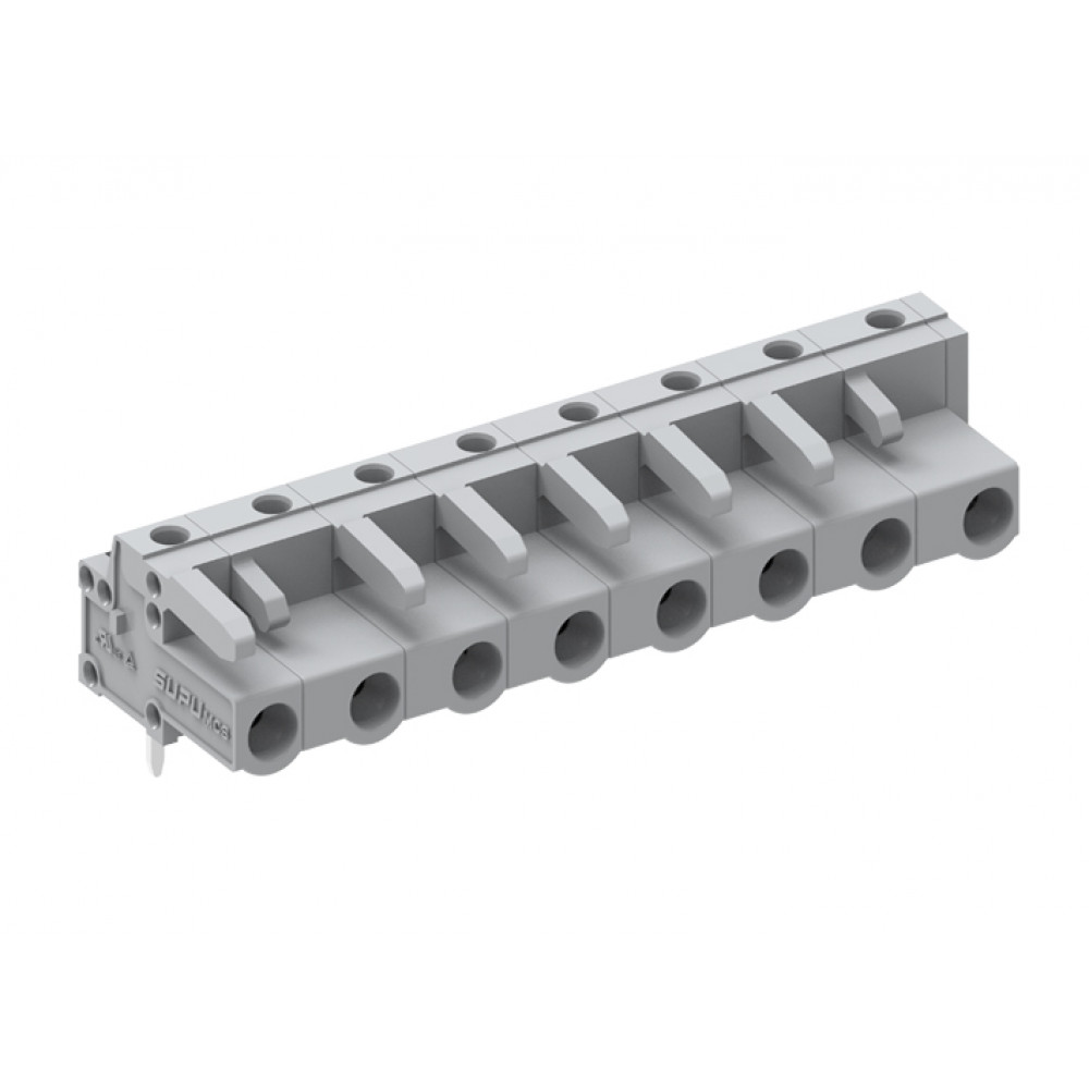 Розеточный разъем, горизонтальный, на плату, шаг: 7.5 мм, 4 полюса, фиксация на плате пайкой, исполнение: стандартное, 500V, 16A, цвет: серый
