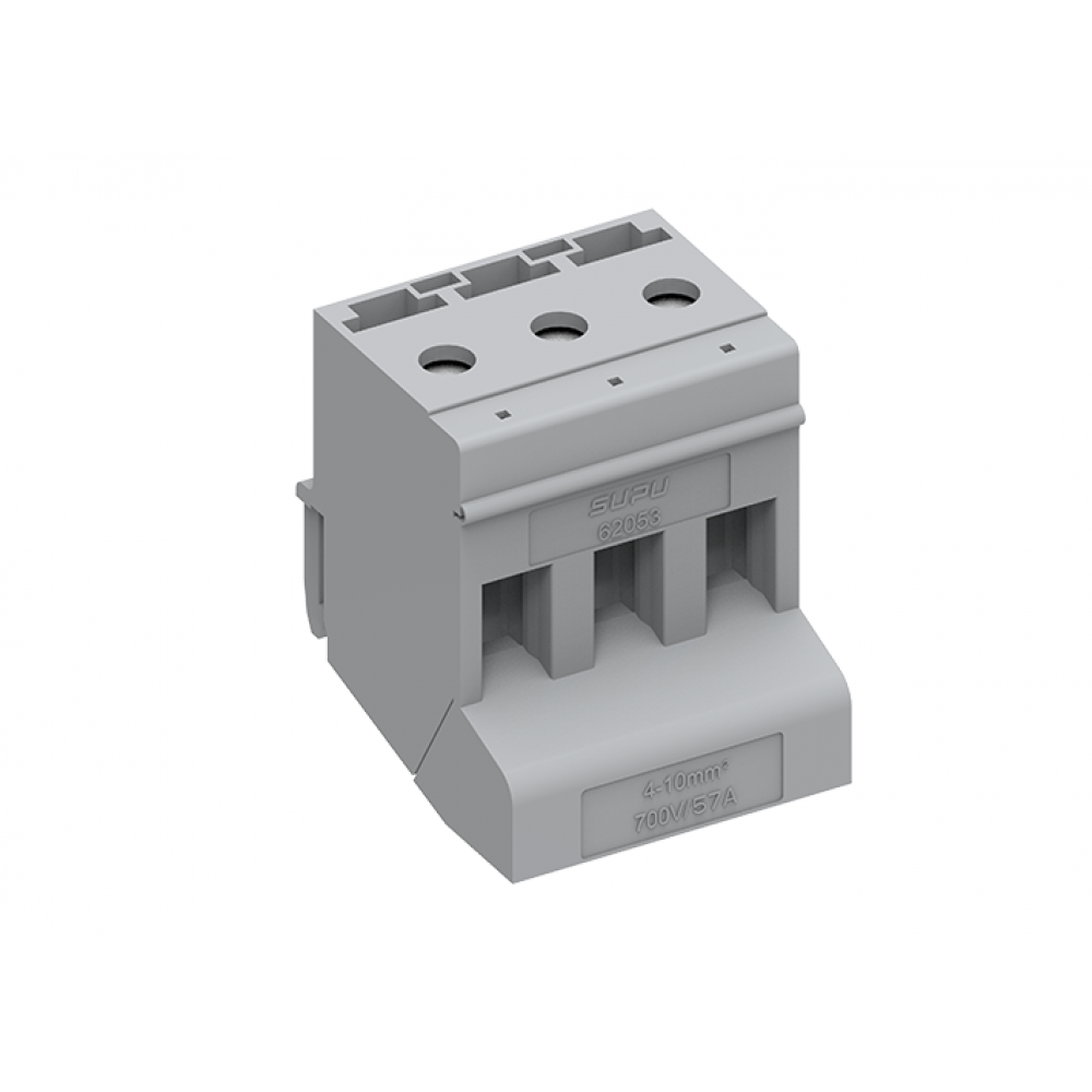 Клеммная колодка для трансформаторов, 3 полюса, сечение проводника: 10 мм кв., тип фиксации провода: винтовой, 57A, 750V, цвет: серый, тип монтажа: на трансформаторную стойку
