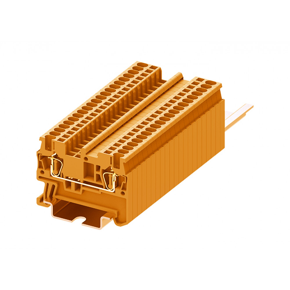 Проходная клемма, тип фиксации провода: пружинный, номинальное сечение: 1,5 мм кв., 17,5A, 500V, ширина: 4,2 мм, цвет: оранжевый, тип монтажа: DIN 35