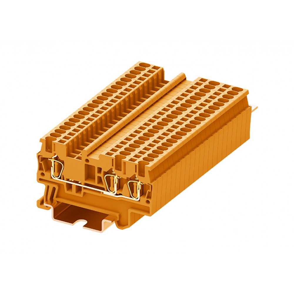 Проходная клемма, 3 точки подключения, тип фиксации провода: пружинный, номинальное сечение: 1,5 мм кв., 17,5A, 500V, ширина: 4,2 мм, цвет: оранжевый, тип монтажа: DIN 35