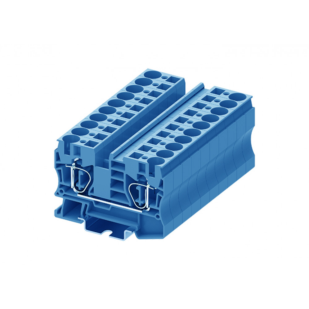 Проходная клемма, тип фиксации провода: пружинный, номинальное сечение: 10 мм кв., 57A, 1000V, ширина: 10,2 мм, цвет: синий, тип монтажа: DIN 35