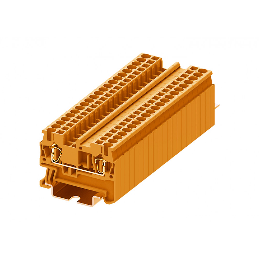 Проходная клемма, тип фиксации провода: пружинный, номинальное сечение: 2,5 мм кв., 24A, 500V, ширина: 5,2 мм, цвет: оранжевый, тип монтажа: DIN 35
