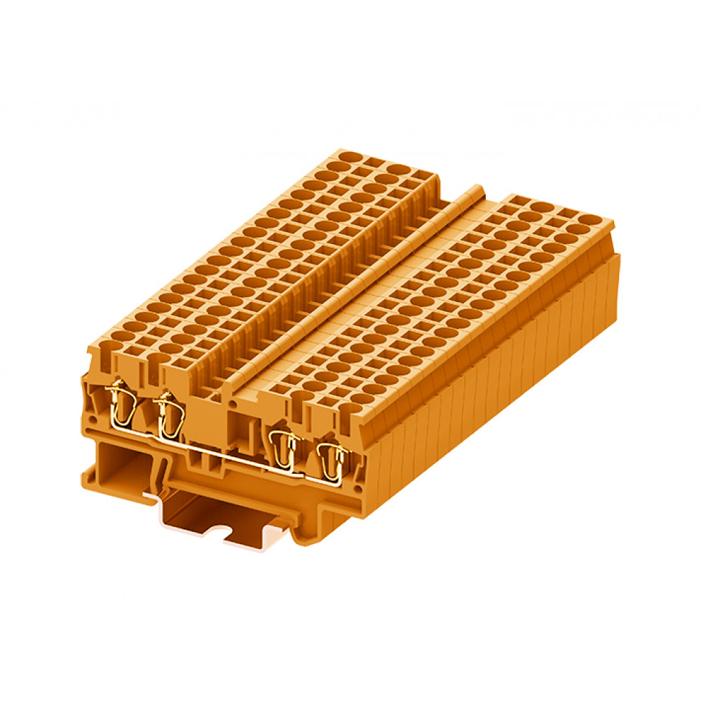 Проходная клемма, 4 точки подключения, пружинный, номинальное сечение: 2,5 мм кв., 24A, 500V, ширина: 5,2 мм, цвет: оранжевый, тип монтажа: DIN 35