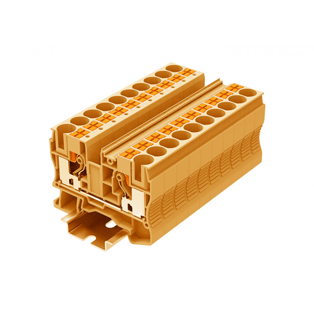 Проходная клемма, тип фиксации провода: push-in, номинальное сечение: 10 мм кв., 57A, 1000V, ширина: 10,2 мм, цвет: оранжевый, тип монтажа: DIN 35