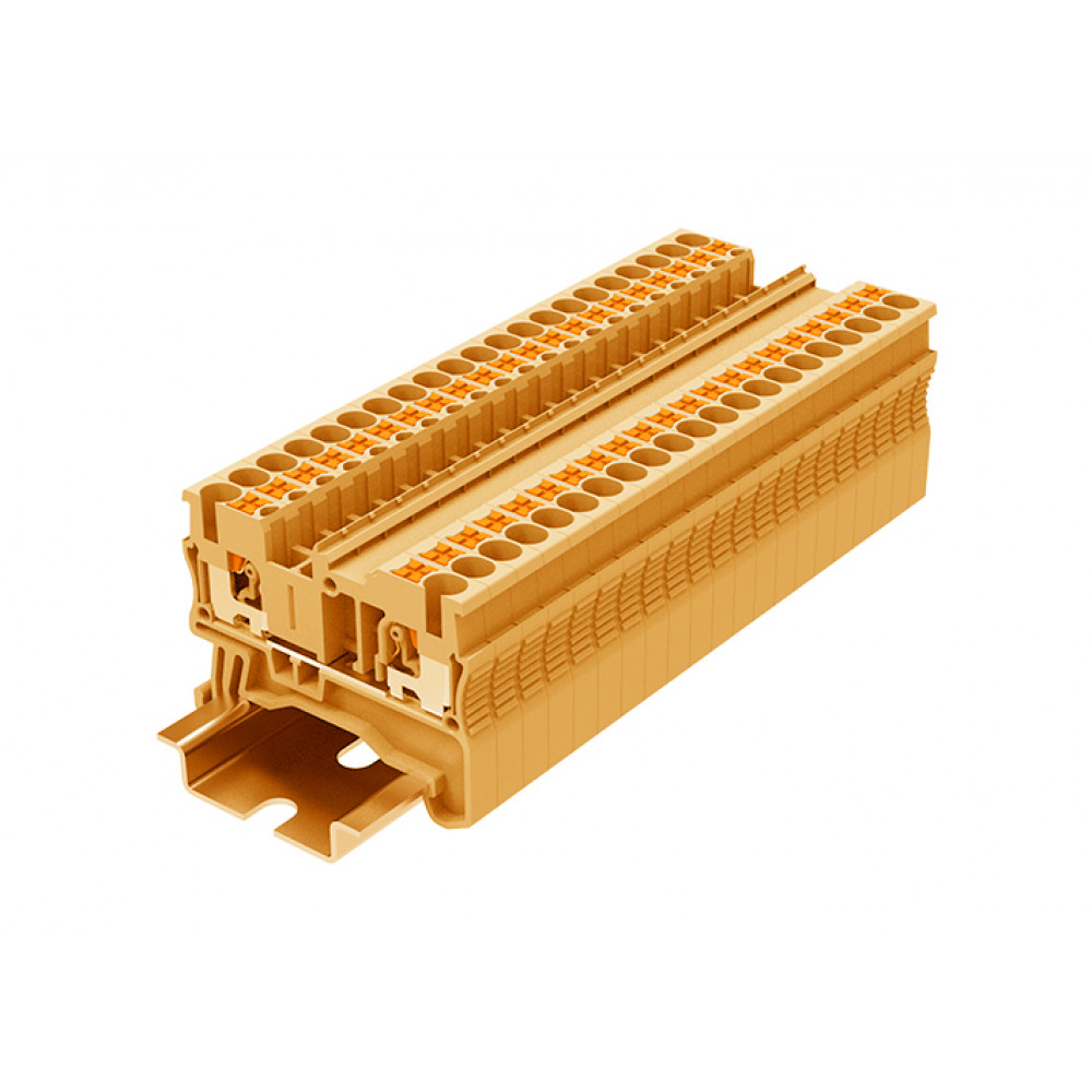 Проходная клемма, тип фиксации провода: push-in, номинальное сечение: 2,5 мм кв., 24A, 500V, ширина: 5,2 мм, цвет: оранжевый, тип монтажа: DIN 35