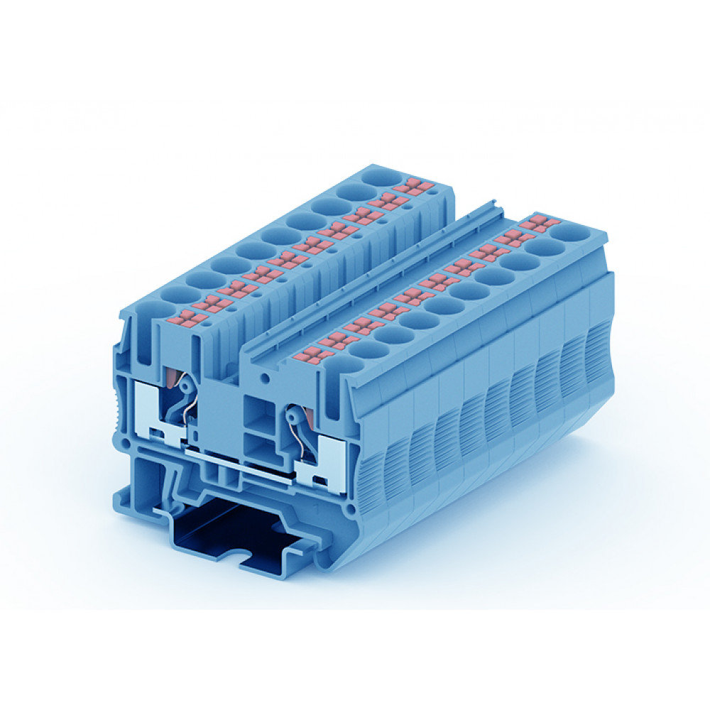 Проходная клемма, тип фиксации провода: push-in, номинальное сечение: 6 мм кв., 41A, 1000V, ширина: 8,2 мм, цвет: синий, тип монтажа: DIN 35