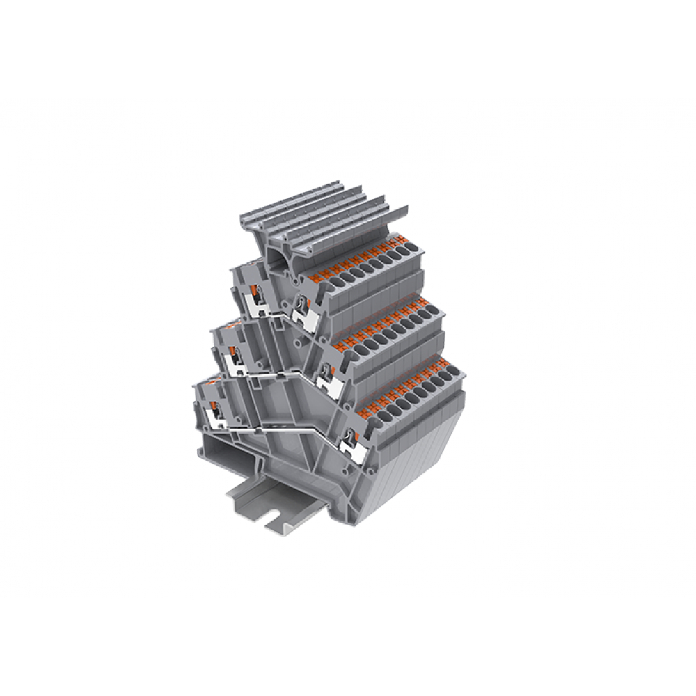 TPTS2.5-2T-GY Клемма TP проходная 3-уровневая угловая с держателем маркировки, Push-in, сеч.2.5мм2, сер.
