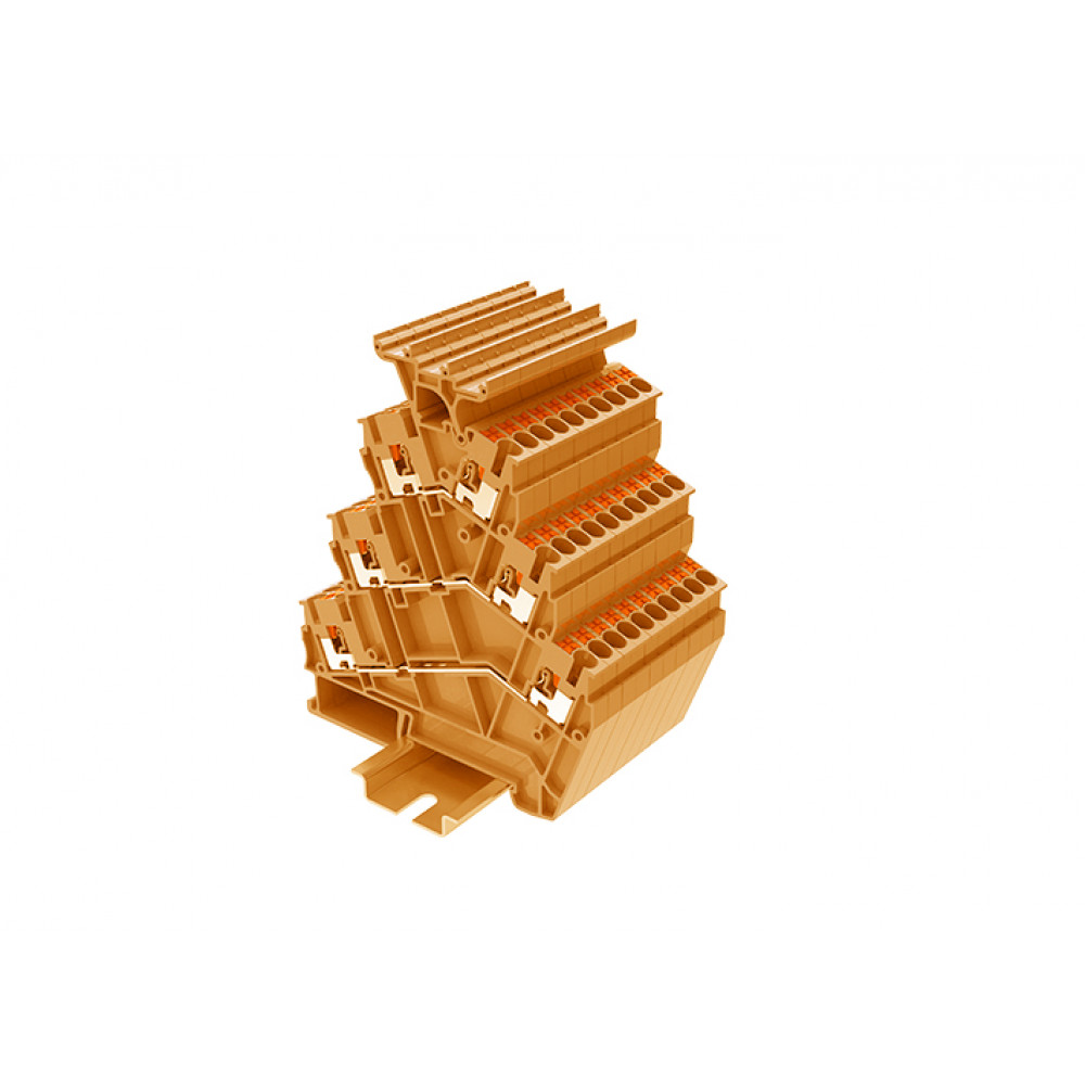 TPTS2.5-2T-OG Клемма TP проходная 3-уровневая угловая с держателем маркировки, Push-in, сеч.2.5мм2, оранж.