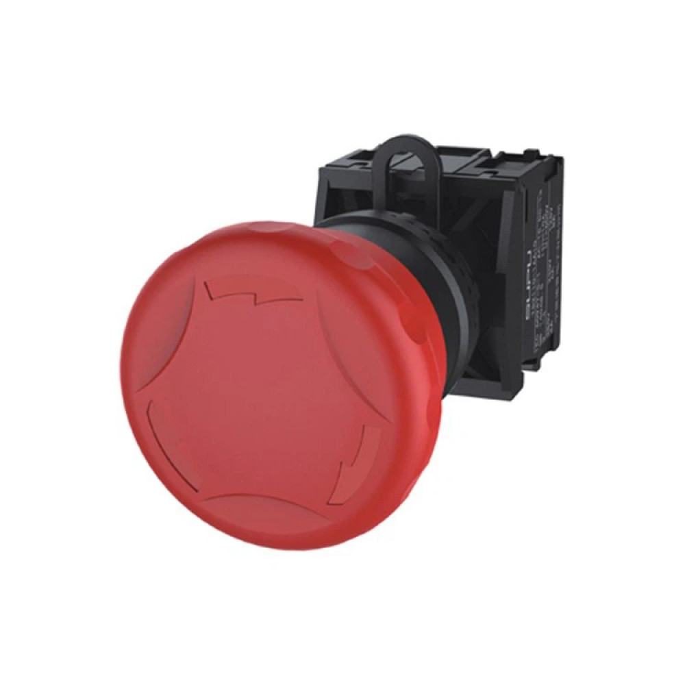 Кнопка аварийного останова, грибовидная, с блокировкой, без подсветки, пластиковое переднее кольцо, без контактной группы, диаметр головки кнопки 40 мм, диаметр посадочного отверстия: 22 мм, цвет: красный