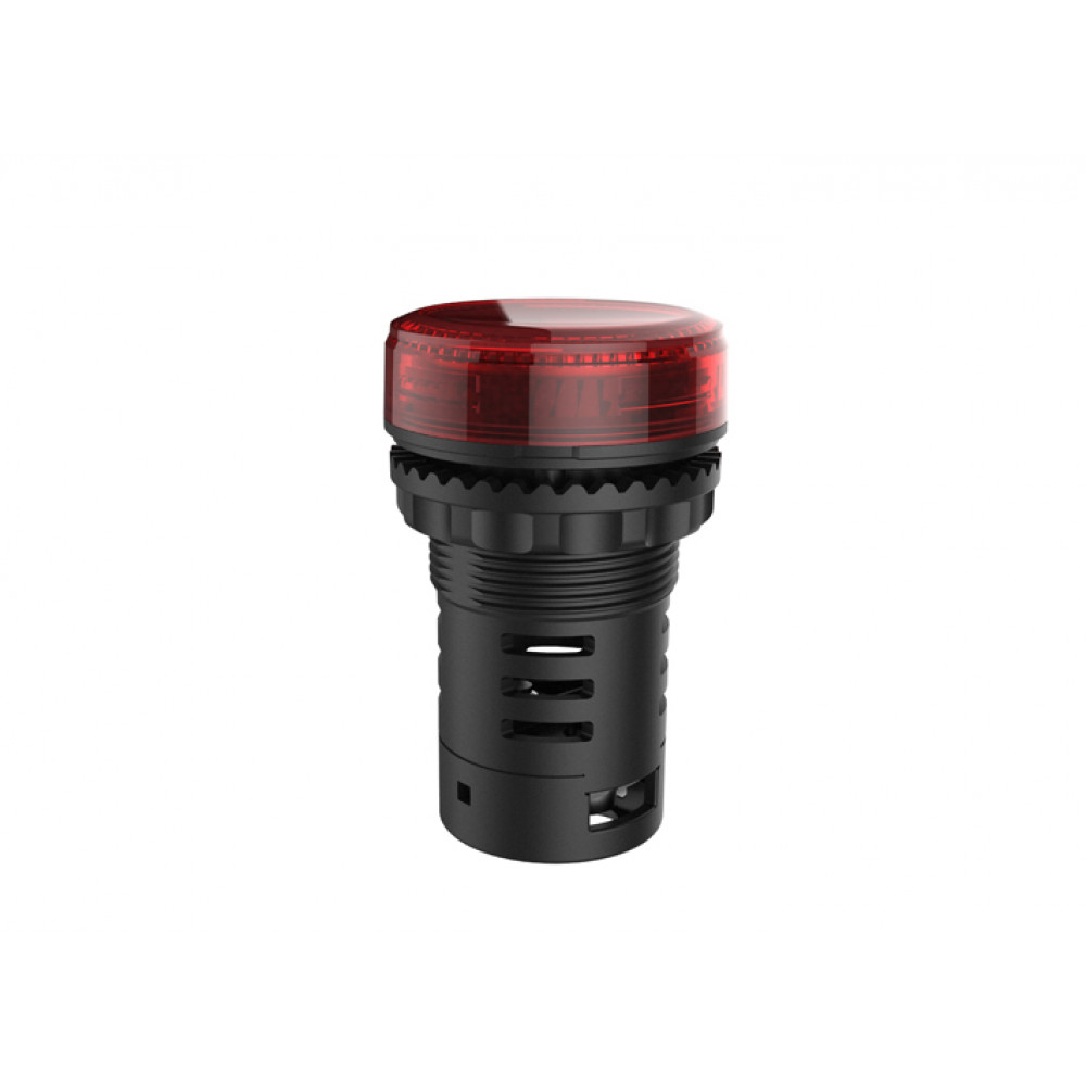 Индикатор, тип F2, LED AC/DC 110V, пластиковое переднее кольцо, диаметр головки индикатора 29,5 мм, диаметр посадочного отверстия: 22 мм, цвет: красный