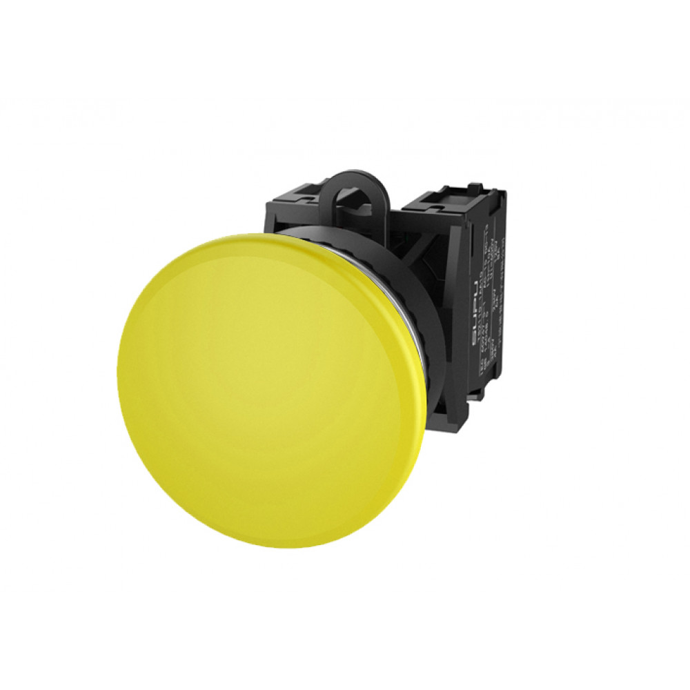 Кнопка грибовидная, без блокировки, без подсветки, алюминиевое переднее кольцо, без контактной группы, диаметр головки кнопки 40 мм, диаметр посадочного отверстия: 22 мм, цвет: желтый