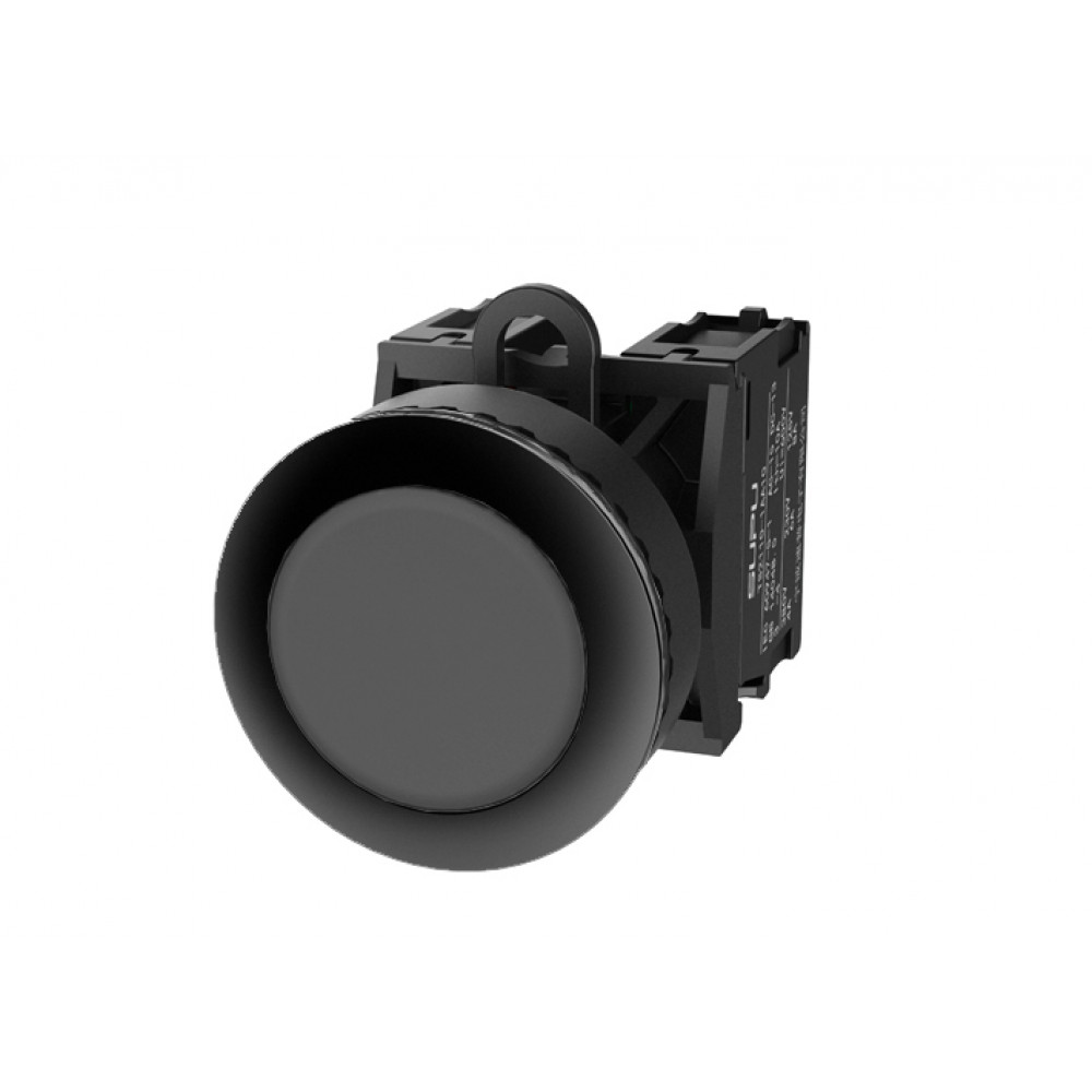 Кнопка круглая плоская, с блокировкой, без подсветки, утопленное пластиковое переднее кольцо, без контактной группы, диаметр головки кнопки 36 мм, диаметр посадочного отверстия: 22 мм, цвет: черный